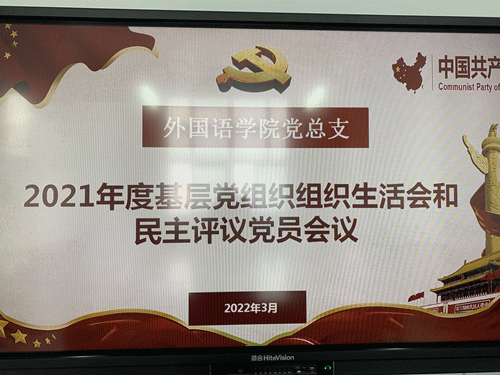 为了扎实开展2021年度基层党组织组织生活会和民主评议党员,外国语学院党总支按照学校党委《关于召开2021年度基层党组织组织生活会和开展民主评议党员的通知》相关要求,深入学习贯彻习近平新时代中国特色社会主义思想,学习贯彻党的十九届六中全会、省委十一届十次全会和遂宁市第八次党代会、市委八届二次全会精神,于2022年3月14日下午在外国语学院会议室召开2021年度党组织组织生活会并对党员开展民主评议。学校宣传部副部长阎锐和艺术与传媒学院党总支副书记何意莅临会议指导。