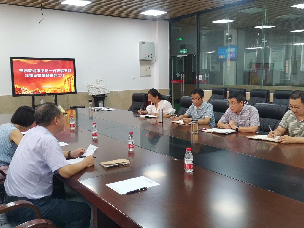 2022年9月5日,学校党委书记张生到智能制造学院调研。智能制造学院院长祝林、党总支书记杨立林、副院长陈德航、党总支副书记向李、二级科长、教师代表参加调研。
