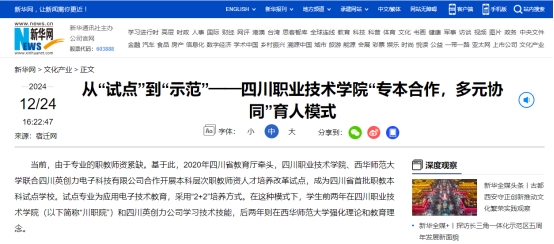 近日,新华网、中国网、现代高等职业技术网(原中国高职高专教育网)、中国教育在线连续刊发专题报道,聚焦四川职业技术学院在职业教育改革中的创新实践与突出成效。