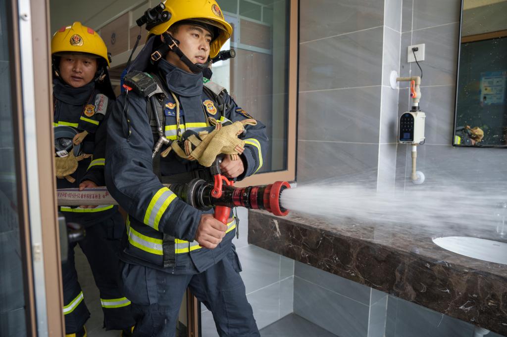 在学生安全撤离公寓后,灭火救援组、医疗援护组迅速进入现场,开展警戒和搜救,转运、抢救“被困学生”,全力配合消防救援支队扑灭火灾。