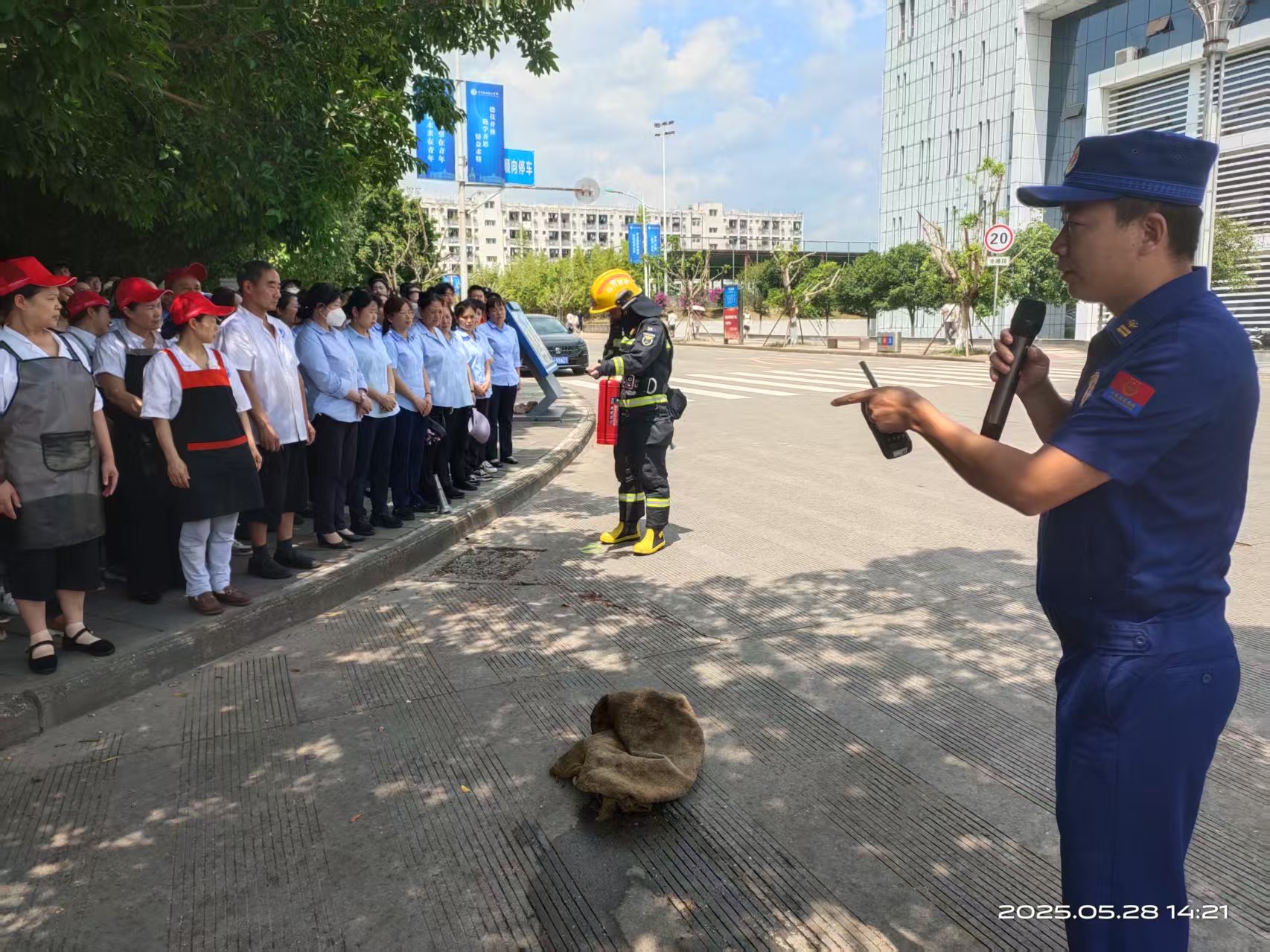 最后,学校邀请遂宁市消防救援支队为驻校保安、公寓与食堂工作人员等重点岗位人员开展了消防知识培训,并在博雅楼前组织油盆灭火实操训练,进一步熟练掌握了灭火毯、灭火器等消防器材的使用方法和要领。