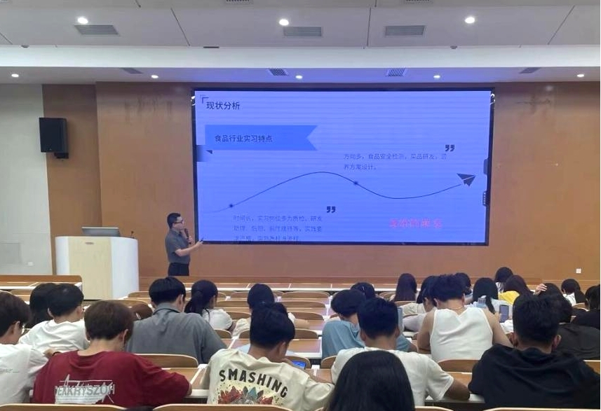 5月22日,由食品与生物技术学院教研室主任冯耀文对当前食品行业发展趋势进行了分析,指出当前就业市场的竞争态势和行业需求变化,提醒同学们要充分认识到找工作的不易,提前做好职业规划,提升自身竞争力。