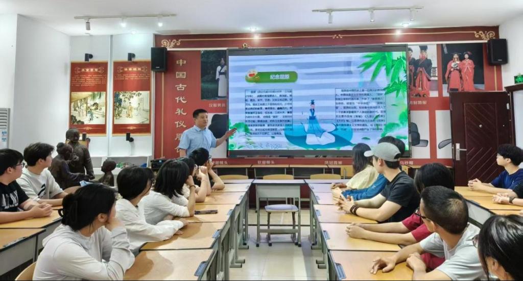 活动伊始,马克思主义学院王申生老师以“端午密码”为主题,深情解读了屈原“长太息以掩涕兮”的赤子丹心,剖析了龙舟竞渡背后凝聚的民族精神,生动还原了挂艾草、佩香囊等习俗中蕴含的古人智慧与生命哲思,引领学子穿越历史长河,感悟端午节文化的厚重底蕴。互动问答环节,学子们争相分享地域端午风俗,气氛异常热烈,“忠贞爱国”“驱邪纳吉”等关键词更是在讨论中凝聚为文化共识。