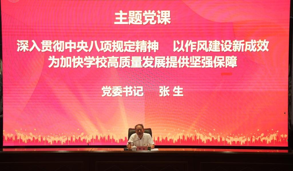 7月1日上午,学校党委书记张生以《深入贯彻中央八项规定精神 以作风建设新成效为加快学校高质量发展提供坚强保障》为题讲授专题党课。