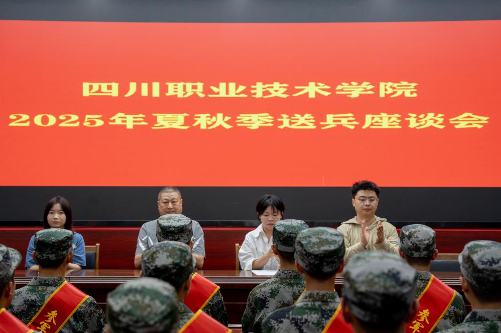 座谈会上,董雪梅代表学校向入伍学生致以祝贺,对其投身国防事业的家国情怀表示敬意。她结合国防建设形势,阐明参军入伍的时代意义,并提出三点期望:一是筑牢思想根基,深入学习贯彻习近平强军思想,坚定听党话、跟党走的政治信念;二是传承“明志、厚德、尚学、笃行”校训精神,展现川职学子良好风貌;三是锤炼过硬本领,成长为“四有”新时代革命军人,在国防建设中实现人生价值。