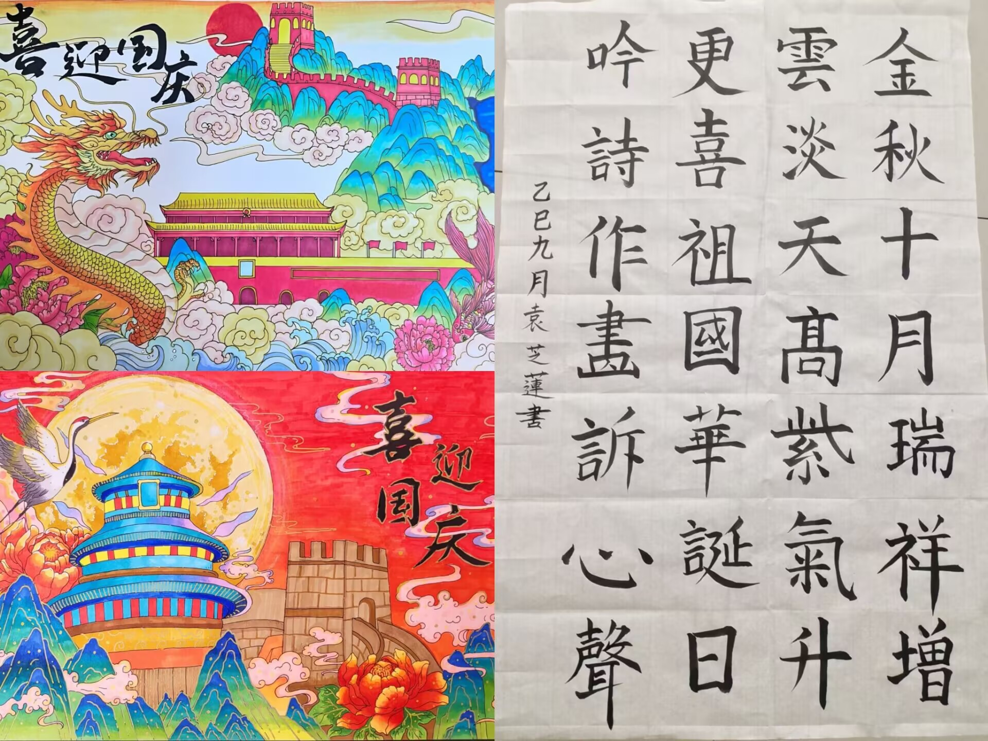 在9月20日起开展的“妙笔传丹青 书画颂祖国”活动中,全院学子积极参与,以笔为媒、以墨抒情,通过书法、绘画等艺术形式,描绘祖国的壮丽山河、展现国家的发展成就、抒发对祖国的热爱与祝福。