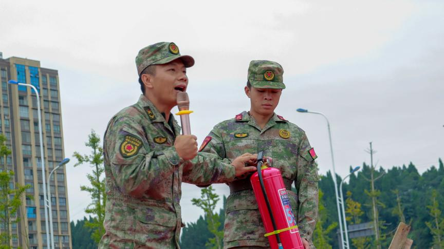 疏散集结并非演练的终点,而是另一项关键技能培训的起点。在田径场预设的模拟火点区域,教官首先详细讲解了干粉灭火器的构造、原理及日常检查要点,并重点演示了“提、拔、握、压”四字操作口诀。
