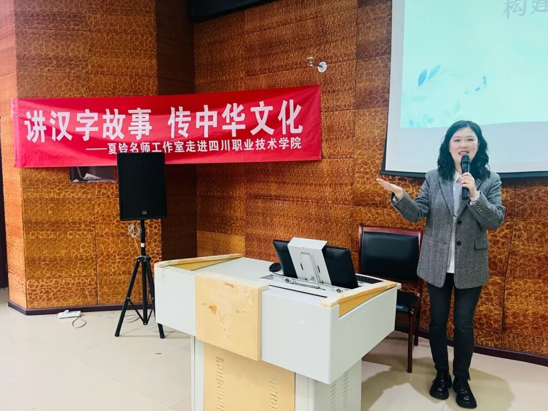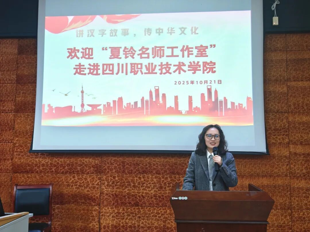 10月21日下午,四川职业技术学院明志楼多功能鉴赏厅内座无虚席,遂宁市高升实验小学校“夏铃名师工作室”一行受邀走进我校,为我院2023级小教专业200余名学子开带来了一场“讲汉字故事,传中华文化”的精彩讲座,分享了她们在一线教学中的创新理念和实践成果。