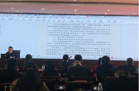 教务处处长杨开明介绍了评建工作的组织架构与工作职责,并就整体安排、关键环节、具体要求等作了专题讲解。他围绕学习材料、评估流程、材料准备、联络机制、质量保障与奖惩机制等方面作详细说明,并进一步对评建材料准备工作进行了分类部署,明确了评建材料的编制要求,确保内容规范、数据统一、编号清晰。
